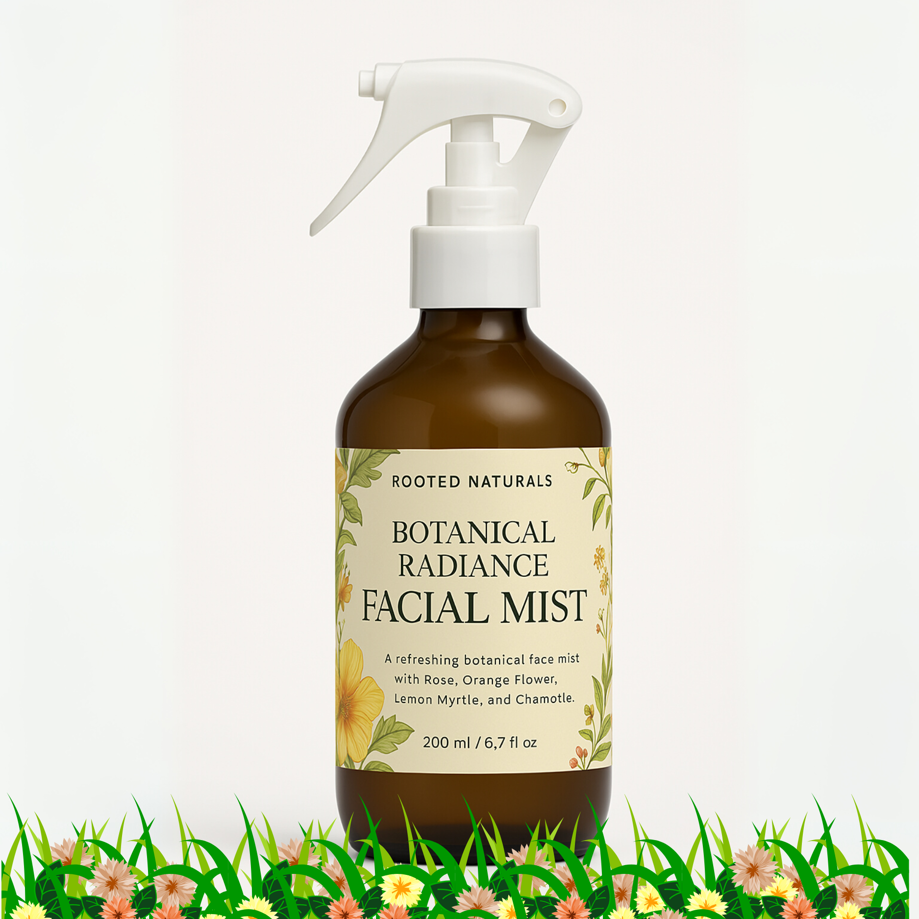 Give your skin the gentle care it deserves with Rooted Naturals’ Radiance Botanical Facial Mist — a luxurious, plant-based formula designed to hydrate, tone, and restore radiance. Made with five active floral waters, including rose, orange flower, chamomile, and lemon myrtle, this refreshing facial mist delivers a calming veil of moisture to dull, tired, or unbalanced skin.