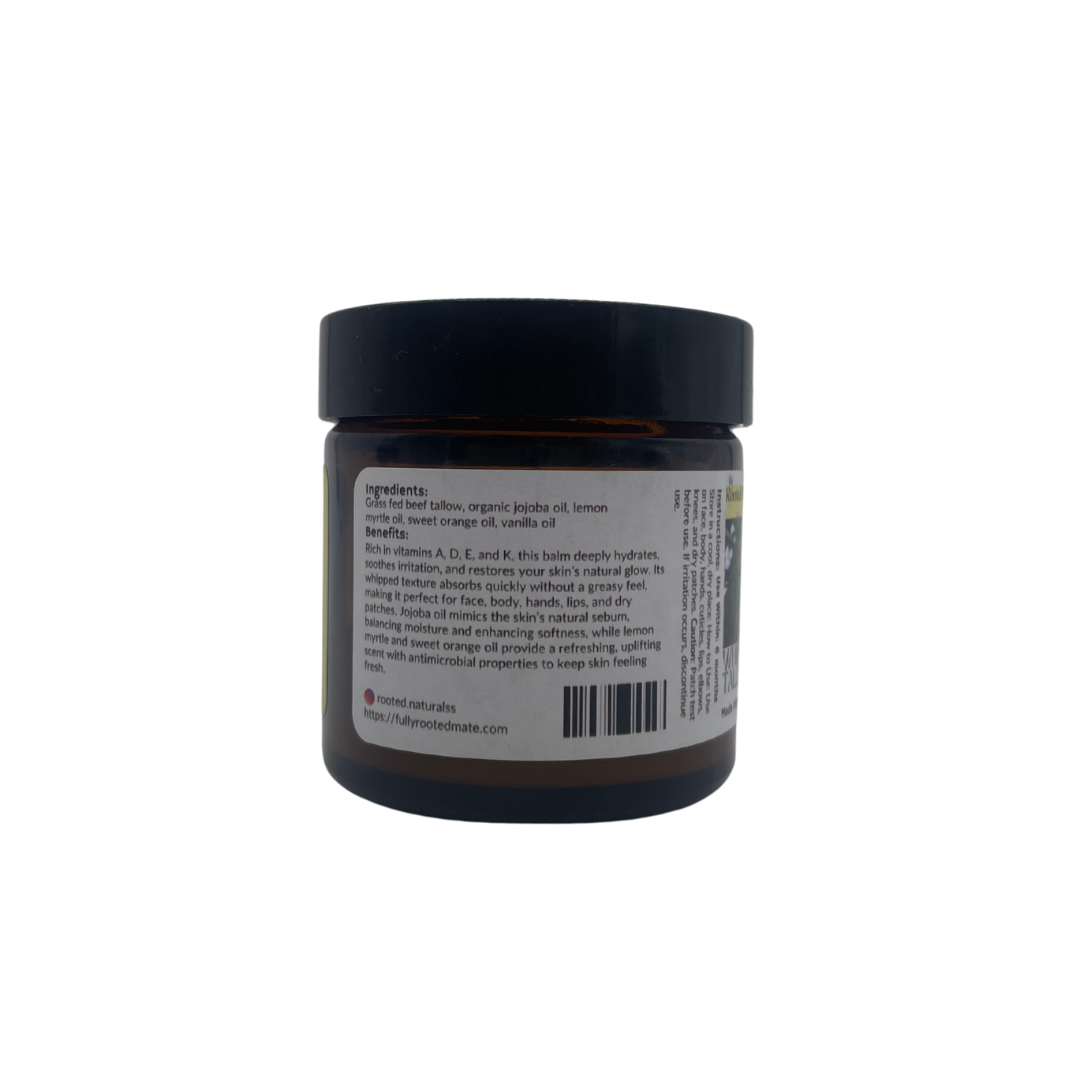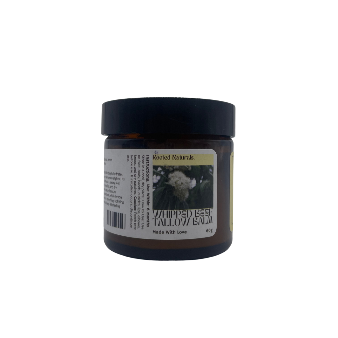Our Lemon Myrtle Whipped Beef Tallow Balm is a luxurious, deeply nourishing blend of 100% Australian grass-fed beef tallow, organic jojoba oil, and a beautifully uplifting fusion of lemon myrtle, sweet orange, and vanilla essential oils. The moment you apply it, you're met with a refreshing citrus burst, delicately balanced by warm, creamy vanilla – a scent that feels fresh, energising, and effortlessly calming all at once.